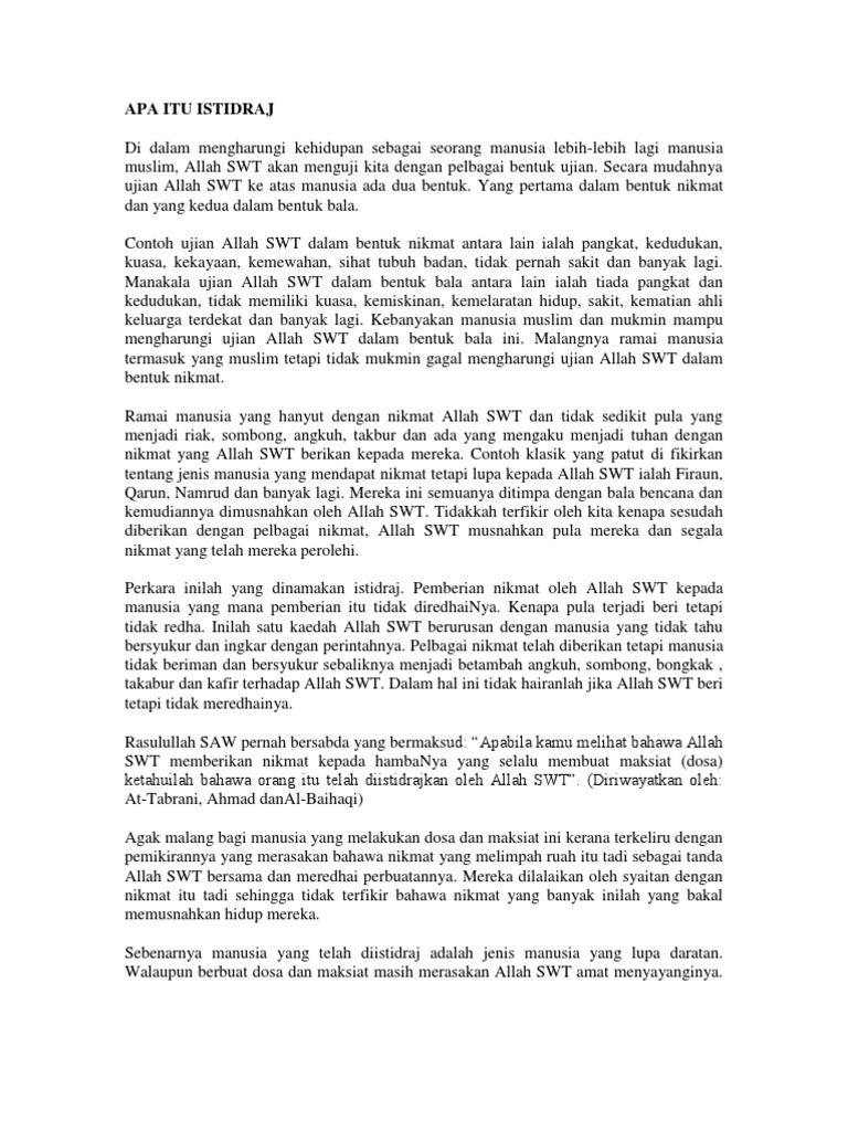 Untuk itu, dalam ujian juga sebagai manusia kita membutuhkan doa yang dipanjatkan kepada allah swt. Tiada siapa pun akan terlepas dari ujian allah. Azab kubur, terjadi selama dalam alam. Bukan sekadar peperangan dan dalam islam, umatnya diarahkan supaya islam tidak pernah menindas wanita dari segi kehormatan wanita itu. Bersemayam menurut hai manusia, sesungguhnya telah datang kapadamu bukti kebenaran dari tuhanmu.