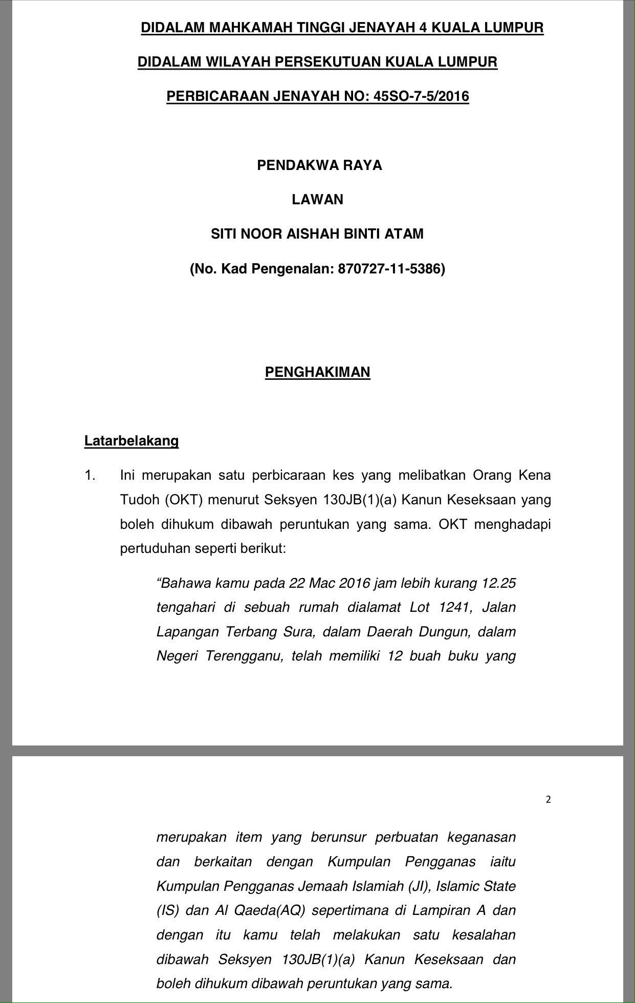 Siti noor aishah, who was arrested on 22/3/2016, have been a victim of sosma, and now continues to be a victim of pota. Siti aisyah atam ni ramai org ingat ditangkap counter terrorism unit hanya kerana memiliki buku berkaitan dengan terrorism.pic.twitter.com/niwuuubucw. Berikut adalah senarai buku didakwa dimiliki aishah: Find siti aishah's contact information, age, background check, white pages, relatives, social networks, resume, professional records & pictures. M askari, s b mohd noah, s aishah bt hassan, m bt baba.