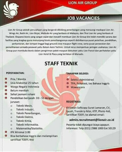 Lowongan Kerja Terbaru Lion Air Group Tingkat Pendidikan ... from 4.bp.blogspot.com We did not find results for: Check spelling or type a new query. Maybe you would like to learn more about one of these? Lowongan pramugari air asia 2017.